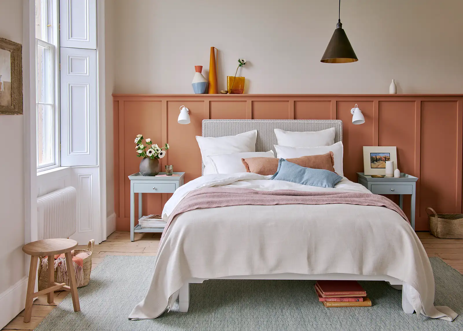 harmoniert mit den hellen, natürlichen Tönen von Wand und Boden. Dazu gesellen sich verspielte Details in Blau.